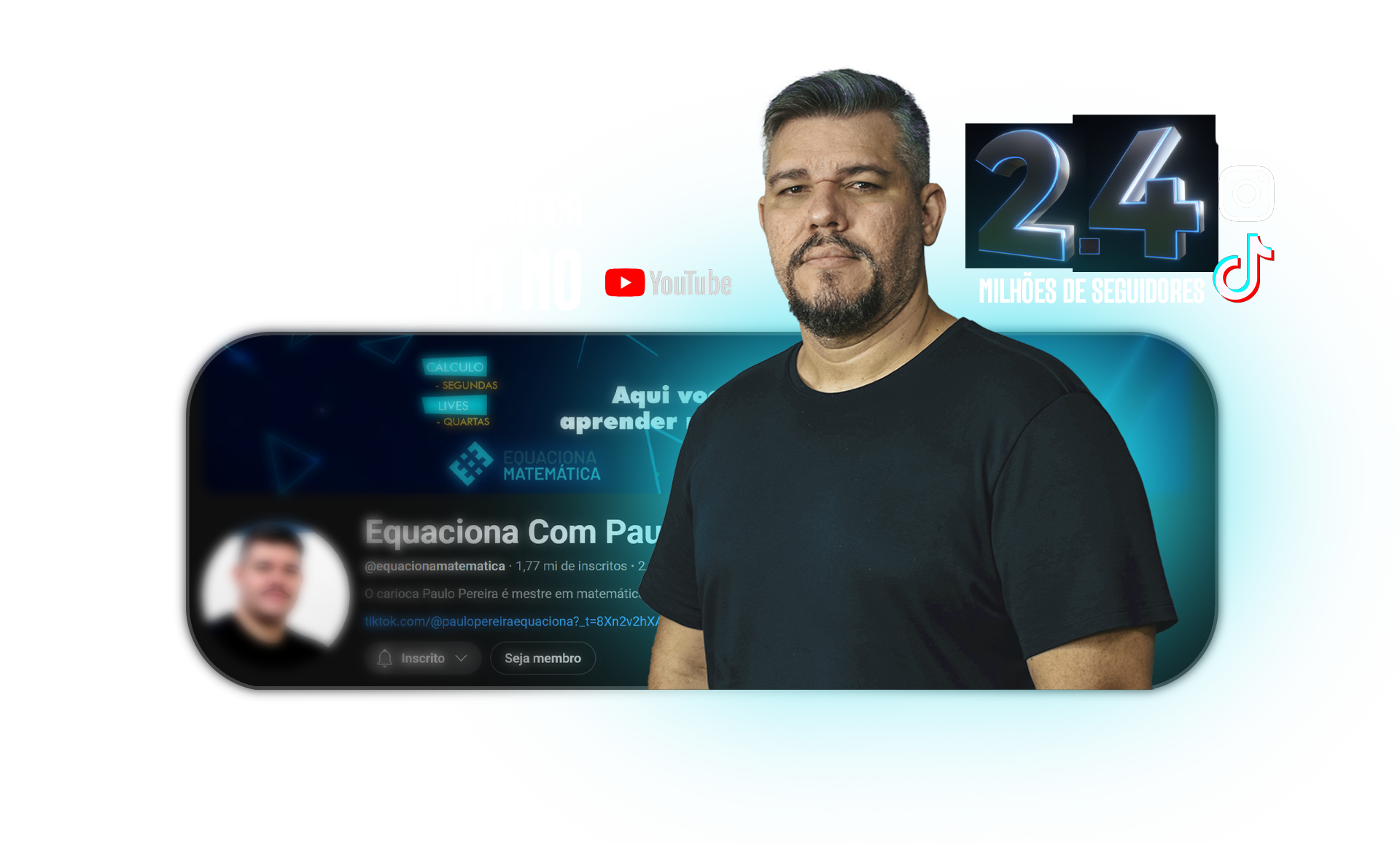 Prof. Paulo Pereira é mestre em matemática pelo IMPA – Instituto Nacional de Matemática Pura e Aplicada. É especialista em concursos militares, atuando no mercado há mais de 20 anos. É gestor do canal Equaciona. Hoje, é um dos professores mais assistidos em todo o Brasil – seus vídeos ultrapassam a marca de 3 milhões de visualizações por mês. Tudo isso por conta da sua didática e amor à matemática, que fazem seus alunos (e professores) o admirarem! Se você ainda não conhece, veja o youtube do Canal Equaciona e faça parte da nossa querida comunidade!